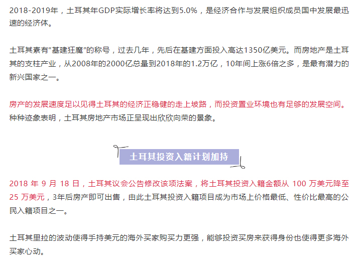 土耳其护照因其独特的优势,在2019年可谓是全球移民护照项目的黑马,冲劲十足。据《2019年全球移居报告》显示,土耳其排第七名,跃居德国之上,此次年度调查收集了163个地点的18,059名海外移民的数据。